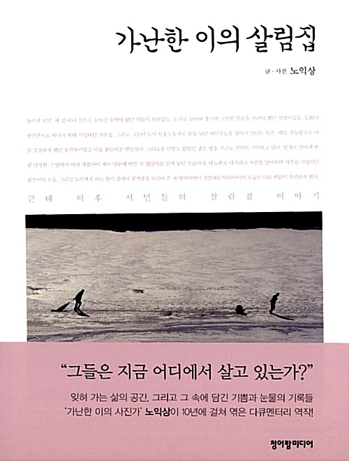 대한민국의 근간과 전통적 가치관의 시작은 논농사를 기본으로하는 정착 거주라 할 수 있다. 이는 이동의 한계를 바탕으로 산업과 교통이 발전하지 못하던 그간의 현실로 긴시간동안 자리잡게 된 현상이라 할 수 있다. 그렇기에 논농사를 짓는 다는 것은 경제권을 획득하는 것이요 이는 지역안에서 권력과 편안한 삶을 영위할 수 있는 기본적인 삶의 욕구를 획득할 수 있는 것이라 할 수 있다. 이를 인정받기 위해선 바로 주거지(집)의 개념의 중요하게 드러나게 된다. 하지만 이러한 주거지를 확보하지 못한 사람들은 지역 공동체에 들어갈 수 없었고 소외받을 수 밖에 없었다. 당연히 마을 외과으로 밀려나게 되고 일부는 산으로 들어가 화전민이 되는 것이 최선의 선택이었으리라. 이러한 거주의 형태적 흐름을 10여년간 지속적으로 작업한 노익상은 그 흐름의 형태를 근대로 부터 시작하여 현대의 모습까지 잘 정리 하였다. 소외받았던 형태중 가장 기본적인 외주물집으로부터 시작하여 독가촌, 외딴집, 여인숙, 막살이집, 문화주택까지 다양한 형태의 주거지를 찾아보면서 이시대에 가장 밑바닥에 있는 사람들의 삶의 모습을 천천히 따라 들어갔다. 그리고 그 속에서 들려져 나오는 가슴 먹먹한 이야기들, 발전이라는 미명하에 우리가 회피하였던 다른 사람들의 모습과 이야기들을 차분히 풀어 놓는다. 하지만 그렇다고 너무 감상적이지도 않다. 때로는 사회적 현상과 역사적 흐름을 짚어내면서 왜 그렇게 될 수 밖에 없는지를 지적하며 지금 우리가 바라봐야 할 것은 무엇인지 질문을 던진다. 그리고 이후 변화의 격랑속에 떠밀려 다시 변화에 적응해야 하는 우리, 그리고 그네들의 삶은 어떻게 변하게 될지 질문을 던진다.