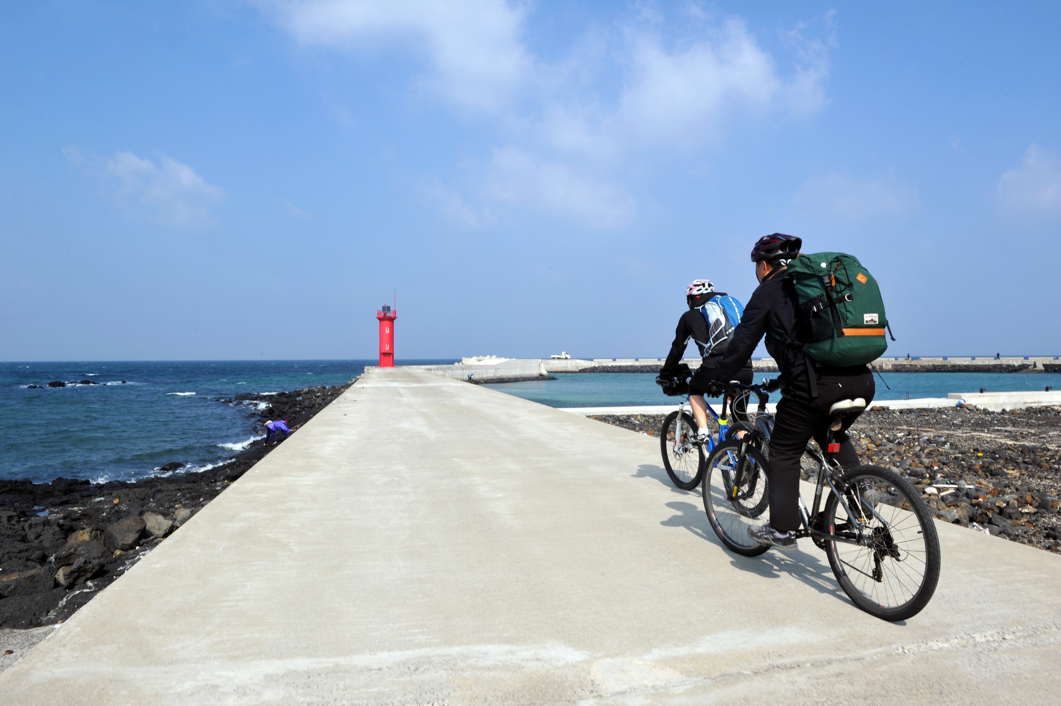 4. 하루정도 짧게 즐길 수 있는 라이딩은 없을까? 해안도로나, 내륙도로에 대한 전문적인 라이딩이 어렵다면 간단히 제주의 풍경을 즐길 수 있는 방법이 있다. 바로 섬 라이딩 코스다. 제주의 주요 섬인 우도, 마라도, 가파도, 추자도를 도는 코스로 짧게는 30분에서 2시간 이내에 완주할 수 있는 코스들이다. 배를 타고 해당 섬에 도착하면 항구 주변으로 자전거 대여점을 쉽게 찾을 수 있으며 1만원 안팎의 저렴한 비용으로 자전거, 카트 등의 라이딩을 즐길 수 있다.