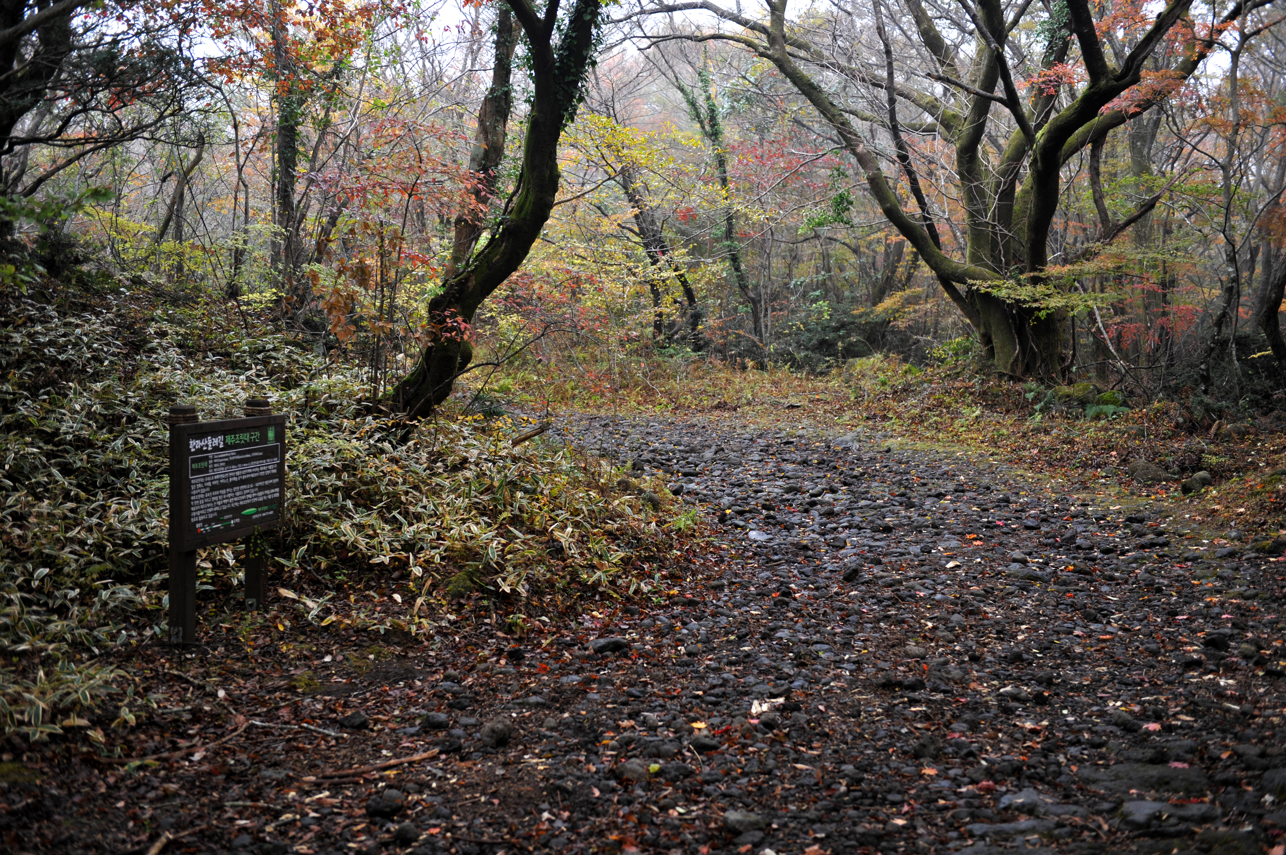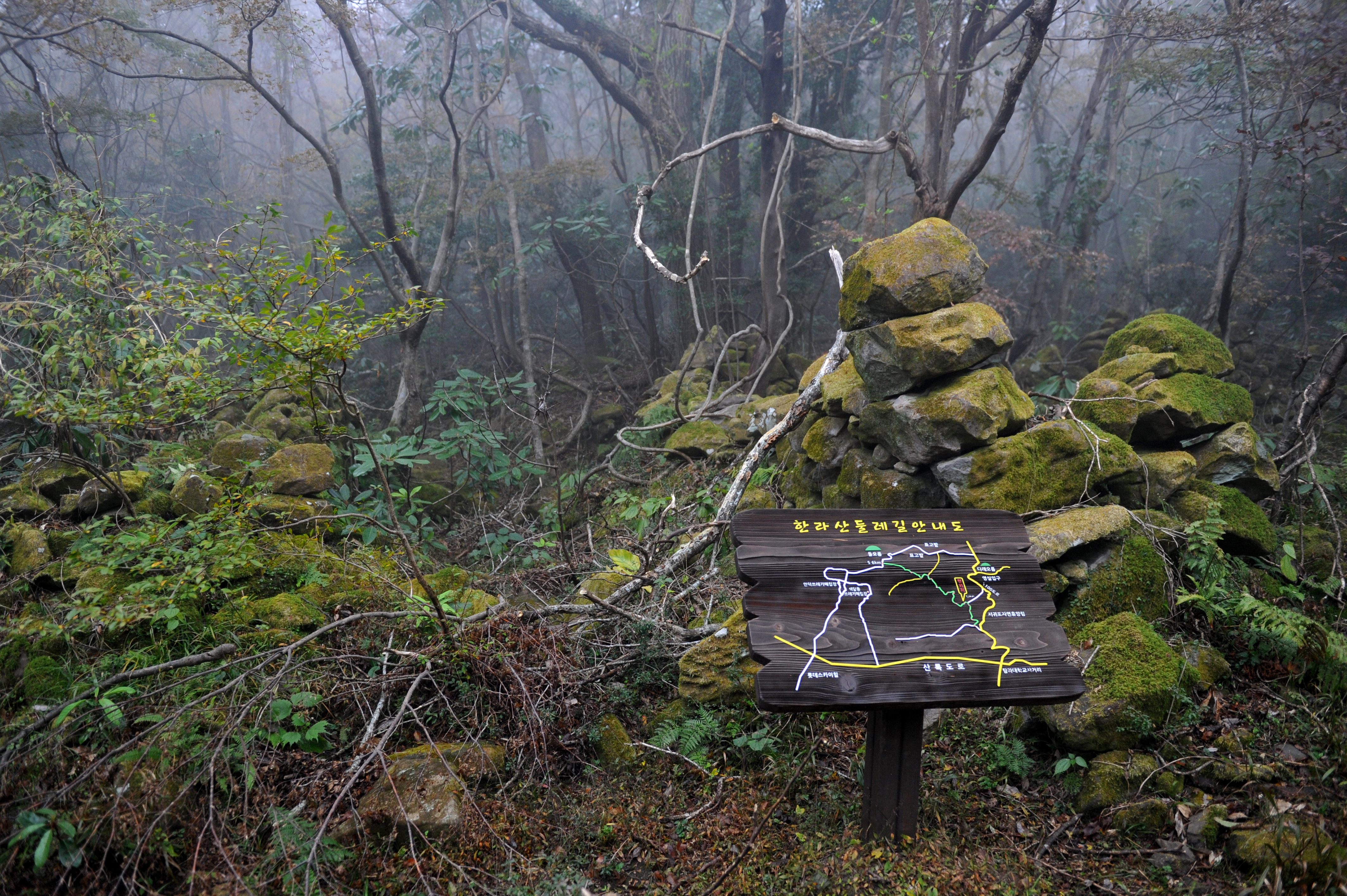 거린사슴(서귀포자연휴양림 입구) - 조릿대구간 - 표고버섯 재배지 - 돌오름입구(5.6km) - 돌오름 정상 - 거린사슴